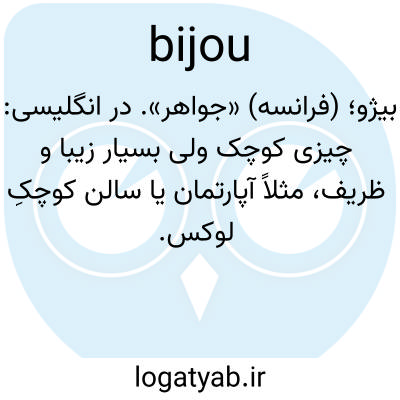 بیژو؛ (فرانسه) «جواهر». در انگلیسی: چیزی کوچک ولی بسیار زیبا و ظریف، مثلاً آپارتمان یا سالن کوچکِ لوکس.