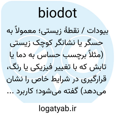 بیودات / نقطهٔ زیستی؛ معمولاً به حسگر یا نشانگر کوچک زیستی (مثلاً برچسب حساس به دما یا تابش که با تغییر فیزیکی یا رنگ، قرارگیری در شرایط خاص را نشان می‌دهد) گفته می‌شود؛ کاربرد در پزشکی و ایمنی دارد.