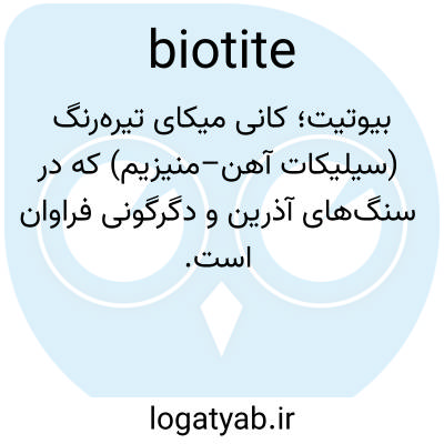 📌 کانی بسیار رایجی از گروه میکا که به صورت ورقه‌ها و پولک‌های سیاه، قهوه‌ای تیره یا سبز تیره یافت می‌شود و یکی از اجزای مهم سنگ‌های آذرین و دگرگونی است.