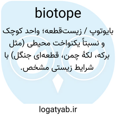 بایوتوپ / زیست‌قطعه؛ واحد کوچک و نسبتاً یکنواخت محیطی (مثل برکه، لکهٔ چمن، قطعه‌ای جنگل) با شرایط زیستی مشخص.