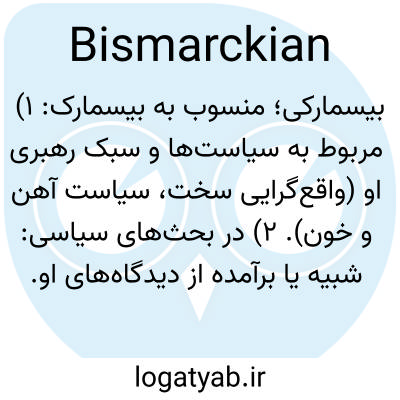 بیسمارکی؛ منسوب به بیسمارک: ۱) مربوط به سیاست‌ها و سبک رهبری او (واقع‌گرایی سخت، سیاست آهن و خون). ۲) در بحث‌های سیاسی: شبیه یا برآمده از دیدگاه‌های او.