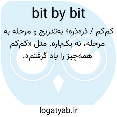📌 همچنین، کم کم. به تدریج، با درجات کم، به آرامی. برای مثال، سنجابها چمن را ذره ذره کندند، تا اینکه تقریباً هیچ علفی باقی نماند، یا کم کم او شروع به فهمیدن منظور جان کرد. اولین اصطلاح برای اولین بار در سال ۱۸۴۹ ثبت شد، اگرچه بیت به معنای «مقدار کم» بسیار قدیمیتر است؛ این نوع به دهه ۱۴۰۰ میلادی برمیگردد.
