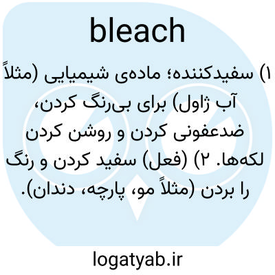 ۱) سفیدکننده؛ ماده‌ی شیمیایی (مثلاً آب ژاول) برای بی‌رنگ کردن، ضدعفونی کردن و روشن کردن لکه‌ها. ۲) (فعل) سفید کردن و رنگ را بردن (مثلاً مو، پارچه، دندان).