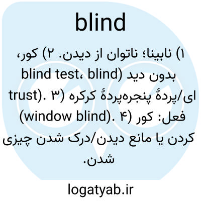 ۱) نابینا؛ ناتوان از دیدن. ۲) کور، بدون دید (blind test، blind trust). ۳) پردهٔ کرکره‌ای/پردهٔ پنجره (window blind). ۴) فعل: کور کردن یا مانع دیدن/درک شدن چیزی شدن.