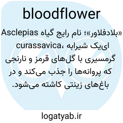 «بلادفلاور»؛ نام رایج گیاه Asclepias curassavica، یک شیرابه‌ای گرمسیری با گل‌های قرمز و نارنجی که پروانه‌ها را جذب می‌کند و در باغ‌های زینتی کاشته می‌شود.