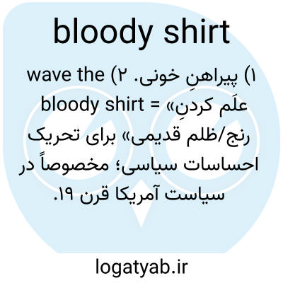 ۱) پیراهنِ خونی. ۲) wave the bloody shirt = «علَم کردنِ رنج/ظلم قدیمی» برای تحریک احساسات سیاسی؛ مخصوصاً در سیاست آمریکا قرن ۱۹.