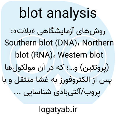 📌 همچنین به آن بلاتینگ گفته می‌شود. بیوشیمی تکنیکی برای تجزیه و تحلیل مولکول‌های زیستی، مانند پروتئین‌ها (آنالیز وسترن بلات)، DNA (آنالیز ساترن بلات) و RNA (آنالیز نورترن بلات)، که شامل جداسازی آنها با الکتروفورز ژل، انتقال به یک ورق نیتروسلولز و تجزیه و تحلیل بعدی با اتورادیوگرافی است.