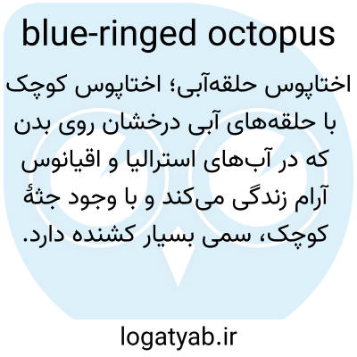 📌 اختاپوس بسیار سمی، Octopus maculosus، از شرق استرالیا که هنگام مزاحمت، نوارهای آبی روی شاخکهایش نشان میدهد