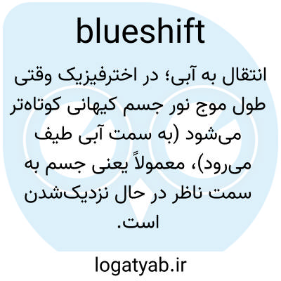 📌 جابجایی خطوط طیفی یک جرم آسمانی به سمت طول موجهای کوتاهتر، که در اثر حرکت جرم به سمت ناظر ایجاد میشود.