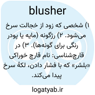 ۱) شخصی که زود از خجالت سرخ می‌شود. 2) رژگونه (مایه یا پودر رنگی برای گونه‌ها). ۳) در قارچ‌شناسی: نام قارچ خوراکی «بلشر» که با فشار دادن، لکهٔ سرخ پیدا می‌کند.