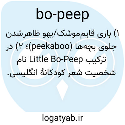 ۱) بازی قایم‌موشک/یهو ظاهر‌شدن جلوی بچه‌ها (peekaboo)؛ ۲) در ترکیب Little Bo-Peep نام شخصیت شعر کودکانهٔ انگلیسی.