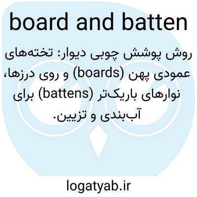 📌 سایدینگی متشکل از تختههای پهن یا ورقهای تخته سهلا که به صورت عمودی با اتصالات لب به لب پوشیده شده با تخته زیرکوب قرار گرفتهاند.