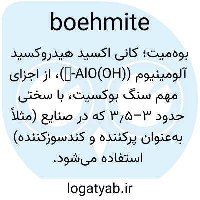 📌 یک ماده معدنی، اکسید آلومینیوم آبدار، AlO(OH)، یکی از اجزای اصلی بوکسیت.