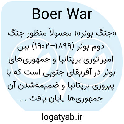 «جنگ بوئر»؛ معمولاً منظور جنگ دوم بوئر (۱۸۹۹–۱۹۰۲) بین امپراتوری بریتانیا و جمهوری‌های بوئر در آفریقای جنوبی است که با پیروزی بریتانیا و ضمیمه‌شدن آن جمهوری‌ها پایان یافت.