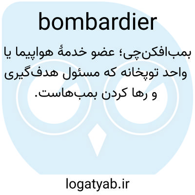 📌 نظامی، عضوی از خدمه هواپیمای بمبافکن که دستگاه نشانهگیر بمب و رهاسازی بمب را اداره میکند.