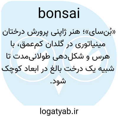 📌 درخت یا درختچهای که با هرس ریشهها و هرس کردن، کوتاه شده و در گلدان یا ظرف دیگری پرورش داده میشود و برای ایجاد شکل یا جلوه دلخواه تربیت میشود.