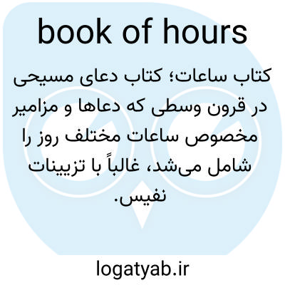 کتاب ساعات؛ کتاب دعای مسیحی در قرون وسطی که دعاها و مزامیر مخصوص ساعات مختلف روز را شامل می‌شد، غالباً با تزیینات نفیس.