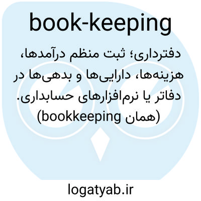 دفترداری؛ ثبت منظم درآمدها، هزینه‌ها، دارایی‌ها و بدهی‌ها در دفاتر یا نرم‌افزارهای حسابداری. (همان bookkeeping)