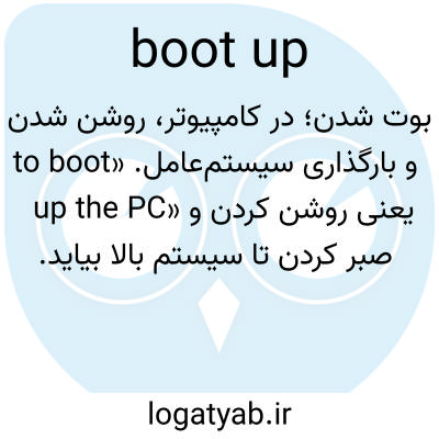 📌 کامپیوتر را روشن کنید، مانند وقتی که کامپیوتر را روشن کردید، بهتر است تا زمانی که کار روزانهتان تمام نشده، آن را خاموش نکنید. این اصطلاح که از اواخر دهه ۱۹۷۰ میلادی رواج پیدا کرده، کوتاه شدهی bootstrap است، یکی دیگر از اصطلاحات کامپیوتری که به استفاده از یک مجموعه دستورالعمل برای بارگذاری مجموعه دیگری از دستورالعملها اشاره دارد. همچنین به ورود به سیستم مراجعه کنید.
