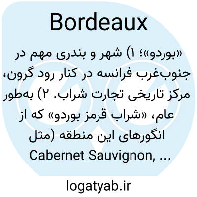 📌 هر یک از شراب‌های مختلفی که در منطقه اطراف بوردو تولید می‌شود، به ویژه شراب قرمز.