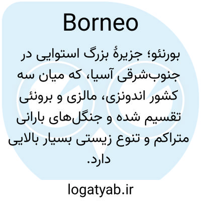 📌 جزیرهای در مجمعالجزایر مالایی، که از نظر سیاسی بین اندونزی، مالزی و سلطاننشین برونئی که تحت الحمایه بریتانیا است، تقسیم شده است. ۷۵۰،۰۰۰ کیلومتر مربع (۲۹۰،۰۰۰ مایل مربع).