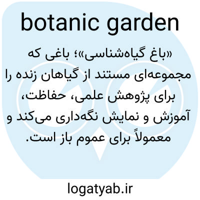 «باغ گیاه‌شناسی»؛ باغی که مجموعه‌ای مستند از گیاهان زنده را برای پژوهش علمی، حفاظت، آموزش و نمایش نگه‌داری می‌کند و معمولاً برای عموم باز است.