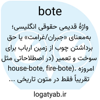 💡 Medieval charters list bote as compensation or lawful wood rights, a reminder that language once counted resources by practical needs.