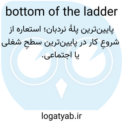 📌 پایین‌ترین یا پایین‌ترین مقام در یک سلسله مراتب. برای مثال، اگر شما را استخدام کنیم، باید از پایین‌ترین نردبان شروع کنید. پله‌های نردبان از قرن چهاردهم به پیشرفت گام به گام تشبیه شده‌اند. همچنین به مرد پست روی ستون توتم مراجعه کنید.