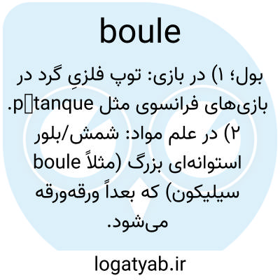 بول؛ ۱) در بازی: توپ فلزیِ گرد در بازی‌های فرانسوی مثل pétanque. ۲) در علم مواد: شمش/بلور استوانه‌ای بزرگ (مثلاً boule سیلیکون) که بعداً ورقه‌ورقه می‌شود.