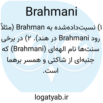۱) نسبت‌داده‌شده به Brahman (مثلاً رود Brahmani در هند). ۲) در برخی سنت‌ها نام الهه‌ای (Brahmani) که جنبه‌ای از شاکتی و همسر برهما است.