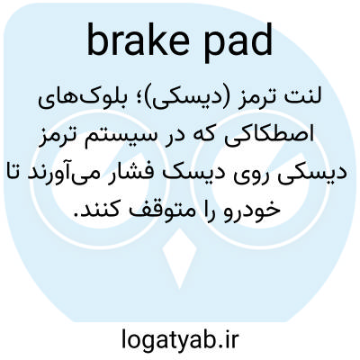 📌 یک بلوک نازک از مادهی تولیدکنندهی اصطکاک که به دیسک یا روتور ترمز وسیلهی نقلیه فشار میآورد تا چرخ را متوقف کند.