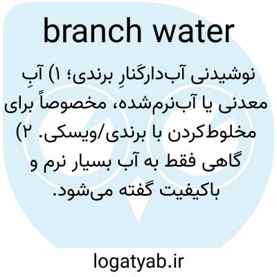 📌 همچنین به آن شاخه (branch) گفته می‌شود. عمدتاً در جنوب میدلند و جنوب ایالات متحده، (در نوشیدنی، هایبال و غیره) آب ساده که با آب گازدار، آبجوی زنجبیلی یا موارد مشابه متفاوت است؛ آب معمولی.