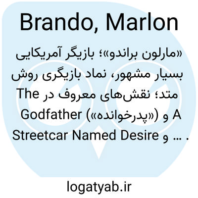 📌 بازیگر آمریکایی قرن بیستم. او اولین بار در سال ۱۹۴۷ در برادوی (همچنین به برادوی مراجعه کنید) با بازی در نمایش «اتوبوسی به نام هوس» اثر تنسی ویلیامز به شهرت رسید. براندو تصویر غمانگیز خود از استنلی کوالسکی را در سال ۱۹۵۱ به فیلم تبدیل کرد و پس از آن بر ساخت فیلمهای سینمایی از جمله «در بارانداز»، «پدرخوانده» و فیلم جنجالی «آخرین تانگو در پاریس» تمرکز کرد.