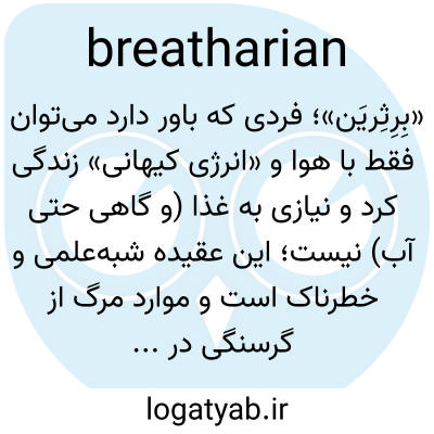 «بِرِثِریَن»؛ فردی که باور دارد می‌توان فقط با هوا و «انرژی کیهانی» زندگی کرد و نیازی به غذا (و گاهی حتی آب) نیست؛ این عقیده شبه‌علمی و خطرناک است و موارد مرگ از گرسنگی در پی آن گزارش شده است.