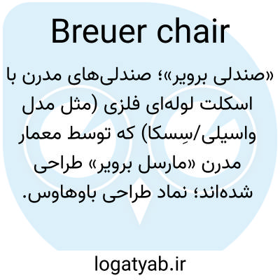 «صندلی برویر»؛ صندلی‌های مدرن با اسکلت لوله‌ای فلزی (مثل مدل واسیلی/سِسکا) که توسط معمار مدرن «مارسل برویر» طراحی شده‌اند؛ نماد طراحی باوهاوس.