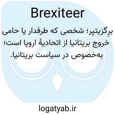 📌 شخصی، به ویژه سیاستمدار، روزنامهنگار یا دیگر چهرههای عمومی، که از خروج بریتانیا از اتحادیه اروپا حمایت کرده، به آن رأی داده یا از آن حمایت کرده است؛ حامی برگزیت