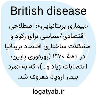«بیماری بریتانیایی»؛ اصطلاحی اقتصادی/سیاسی برای رکود و مشکلات ساختاری اقتصاد بریتانیا در دههٔ ۱۹۷۰ (بهره‌وری پایین، اعتصابات زیاد و…)، که به «مرد بیمار اروپا» معروف شد.