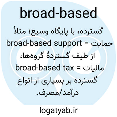 گسترده، با پایگاه وسیع؛ مثلاً broad-based support = حمایت از طیف گستردهٔ گروه‌ها، broad-based tax = مالیات گسترده بر بسیاری از انواع درآمد/مصرف.