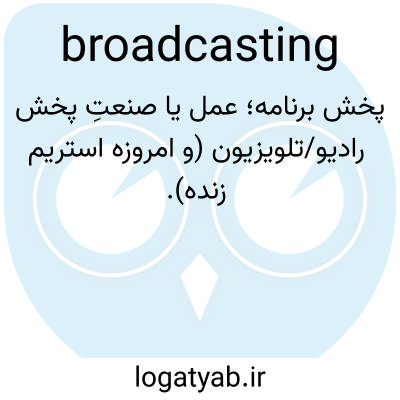 📌 عمل انتقال گفتار، موسیقی، تصاویر بصری و غیره، مثلاً از طریق رادیو یا تلویزیون.
