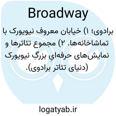 برادوی؛ ۱) خیابان معروف نیویورک با تماشاخانه‌ها. ۲) مجموع تئاترها و نمایش‌های حرفه‌ایِ بزرگِ نیویورک (دنیای تئاتر برادوی).