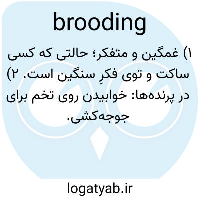 ۱) غمگین و متفکر؛ حالتی که کسی ساکت و توی فکرِ سنگین است. ۲) در پرنده‌ها: خوابیدن روی تخم برای جوجه‌کشی.