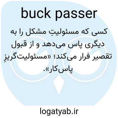 📌 شخصی که با انداختن مسئولیت به گردن دیگری، به خصوص به طور ناعادلانه یا نامناسب، از زیر بار آن شانه خالی میکند.