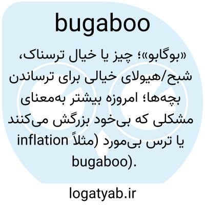 «بوگابو»؛ چیز یا خیال ترسناک، شبح/هیولای خیالی برای ترساندن بچه‌ها؛ امروزه بیشتر به‌معنای مشکلی که بی‌خود بزرگش می‌کنند یا ترس بی‌مورد (مثلاً inflation bugaboo).