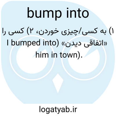 ۱) به کسی/چیزی خوردن، ۲) کسی را «اتفاقی دیدن» (I bumped into him in town).