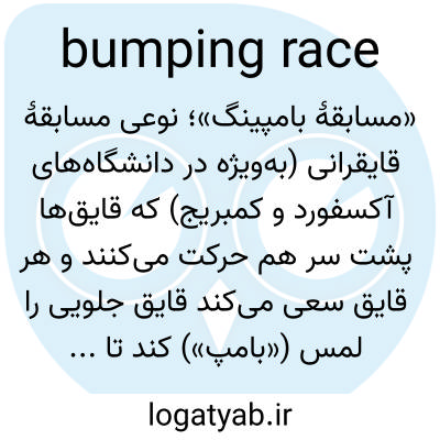 📌 (به ویژه در آکسفورد و کمبریج) مسابقهای که در آن قایقرانان هشت نفره با فاصله مساوی پشت سر هم شروع به حرکت میکنند و هر کدام سعی میکنند قایق جلویی را به زمین بزنند.
