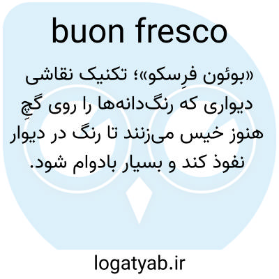 «بوئون فرِسکو»؛ تکنیک نقاشی دیواری که رنگ‌دانه‌ها را روی گچِ هنوز خیس می‌زنند تا رنگ در دیوار نفوذ کند و بسیار بادوام شود.