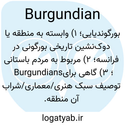 بورگوندیایی؛ ۱) وابسته به منطقه یا دوک‌نشین تاریخی بورگونی در فرانسه؛ ۲) مربوط به مردم باستانی Burgundians؛ ۳) گاهی برای توصیف سبک هنری/معماری/شراب آن منطقه.