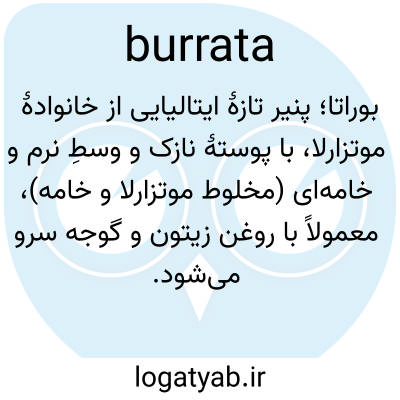 بوراتا؛ پنیر تازهٔ ایتالیایی از خانوادهٔ موتزارلا، با پوستهٔ نازک و وسطِ نرم و خامه‌ای (مخلوط موتزارلا و خامه)، معمولاً با روغن زیتون و گوجه سرو می‌شود.