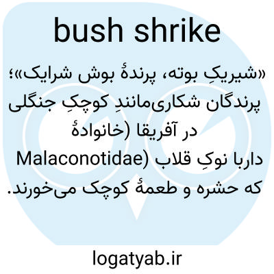 «شیریکِ بوته، پرندهٔ بوش شرایک»؛ پرندگان شکاری‌مانندِ کوچکِ جنگلی در آفریقا (خانوادهٔ Malaconotidae) با نوکِ قلاب‌دار که حشره و طعمهٔ کوچک می‌خورند.