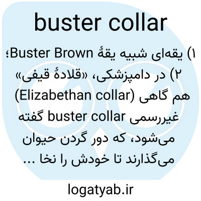 ۱) یقه‌ای شبیه یقهٔ Buster Brown؛ ۲) در دامپزشکی، «قلادهٔ قیفی» (Elizabethan collar) هم گاهی غیررسمی buster collar گفته می‌شود، که دور گردن حیوان می‌گذارند تا خودش را نخاراند.